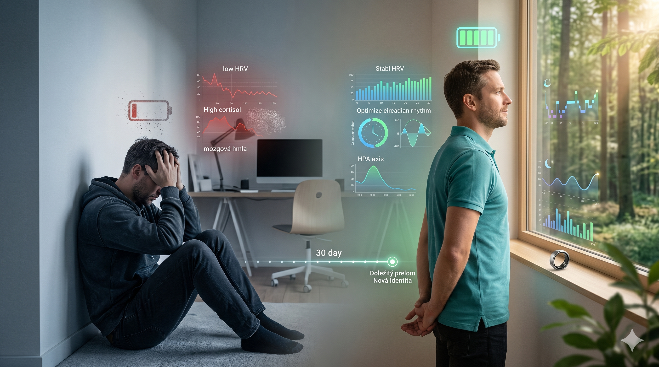 Vedecký základ: Neradím vám „viac relaxovať“. Učím vás, ako funguje vaša os HPA (prepojenie mozgu a nadobličiek) a prečo je nízka variabilita srdcového rytmu (HRV) merateľným dôkazom vášho vyčerpania.